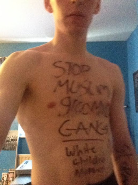 I'll certainly be writing full posts on this outrage in the coming weeks but for now I'd like to highlight the bravery of James Lamb, a young local lad who was arrested for staging a one man protest by walking straight into Newcastle city centre with ''Stop Muslim Grooming Gangs'' and ''White Children Matter'' written across his face, forehead, chest and back.