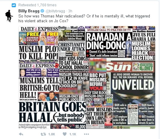 Sitting in the comfort of his Dorset sea-view mansion, Leftist activist, Billy Bragg scored a super-hit on Twitter:
