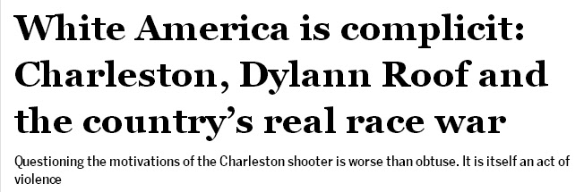 ''The massacre in Charleston was not just an isolated hate crime carried out by a mentally ill racist in South Carolina. It is simultaneously representative and starkly indicative of the rampant racism structurally embedded in America, the responsibility for which, it might be argued, bears no exemption for any American, especially white Americans, north or south, republican or democrat.