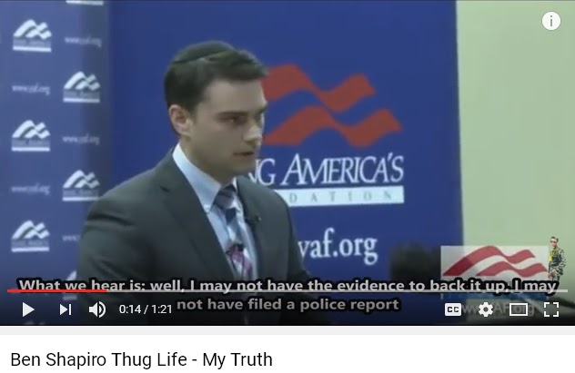 The recent surge of interest in the Alt-Right meant that I spent more time than usual searching that term on You Tube to keep track of what the latest news was, however, because Ben Shapiro spends an extraordinary amount of time attacking the Alt-Right, You Tube was suggesting his material as videos I'd be interested in.